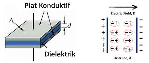 Dielektrik adalah sejenis bahan isolator listrik yang dapat diberikan polarisasi dengan cara menempatkan bahan dielektrik dalam medan listrik. Ketika bahan ini berada dalam medan listrik, muatan listrik yang terkandung di dalamnya tidak akan mengalir, sehingga tidak timbul arus listrik seperti bahan konduktor, tetapi hanya sedikit bergeser dari posisi setimbangnya sehingga mengakibatkan terciptanya pengutuban dielektrik. Oleh karena pengutuban dielektrik, muatan positif bergerak menuju kutub negatif medan listrik, sedang muatan negatif bergerak pada arah berlawanan (yaitu menuju kutub positif medan listrik). Hal ini menimbulkan medan listrik internal (di dalam bahan dielektrik) yang menyebabkan jumlah keseluruhan medan listrik yang melingkupi bahan dielektrik menurun.